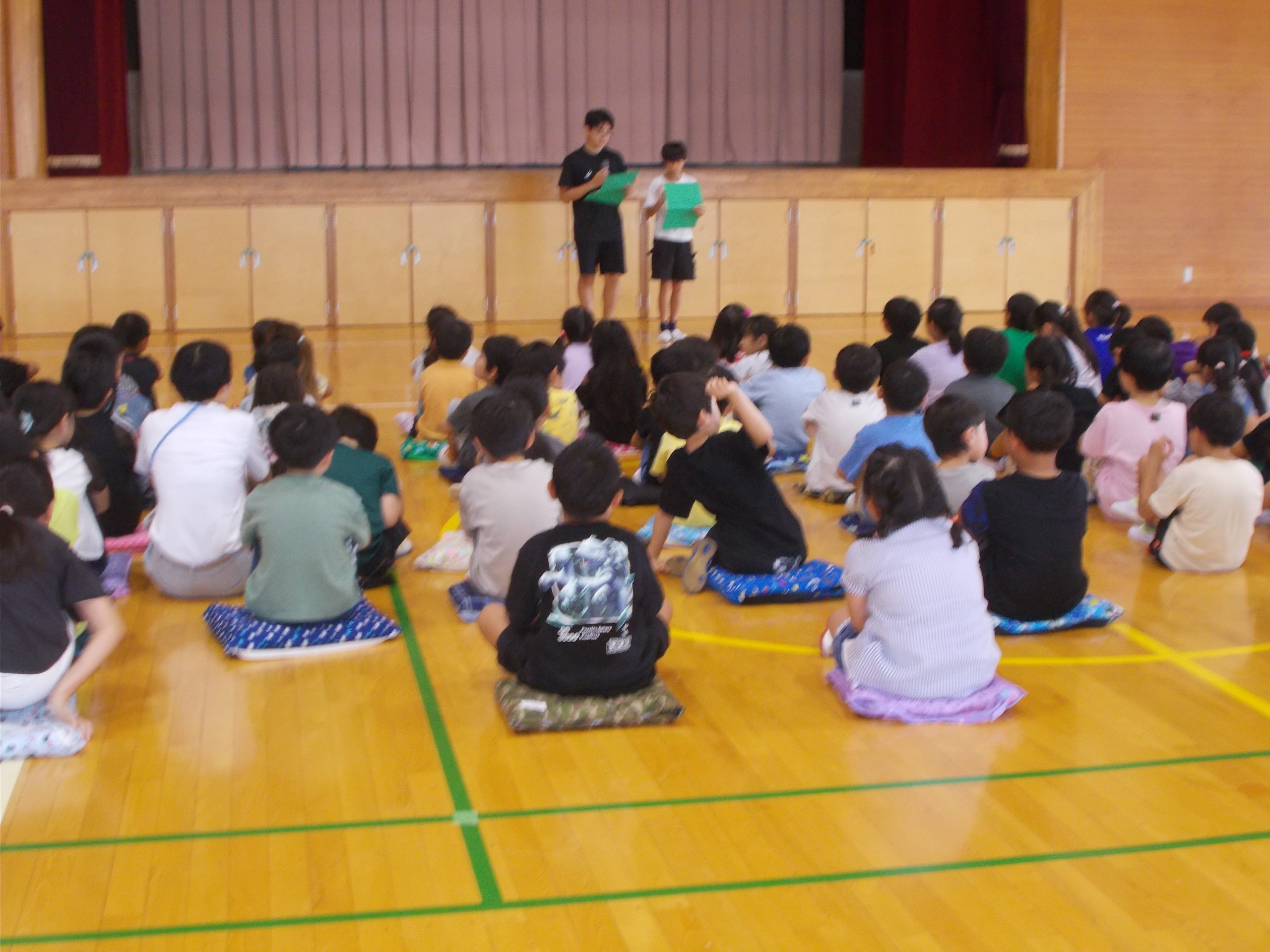 まだ暑さが残っていましたが,全校児童が体育館に集まり,