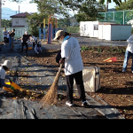 校庭の側溝の泥揚げ,農園の除草,大和川土手の除草など