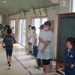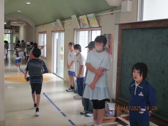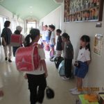 1 年生から6年生までが一緒に取り組むので,お互いに励みになり ますし上級生が下級生に声をかけることもできなかなか良い取り組 みの一つです。活動が終わると職員室の前に 集まり ,「よかったこと」 「直した方がいいところ」をみんなで出し合います。出された内容を, 代表児童が給食時に放送しています。この振り返りがとてもよいと思 います。全校であいさつを盛り上げていこうという 気持ちになります。