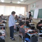 行われました。3年生は初めての書写の授業を行うので,準備や