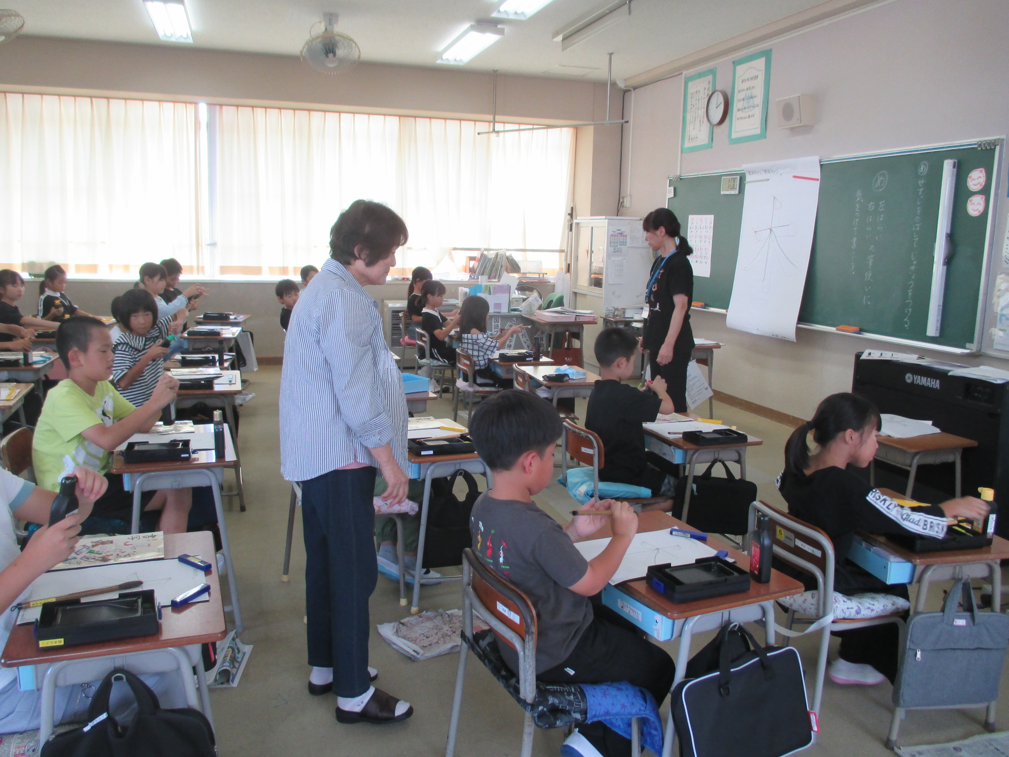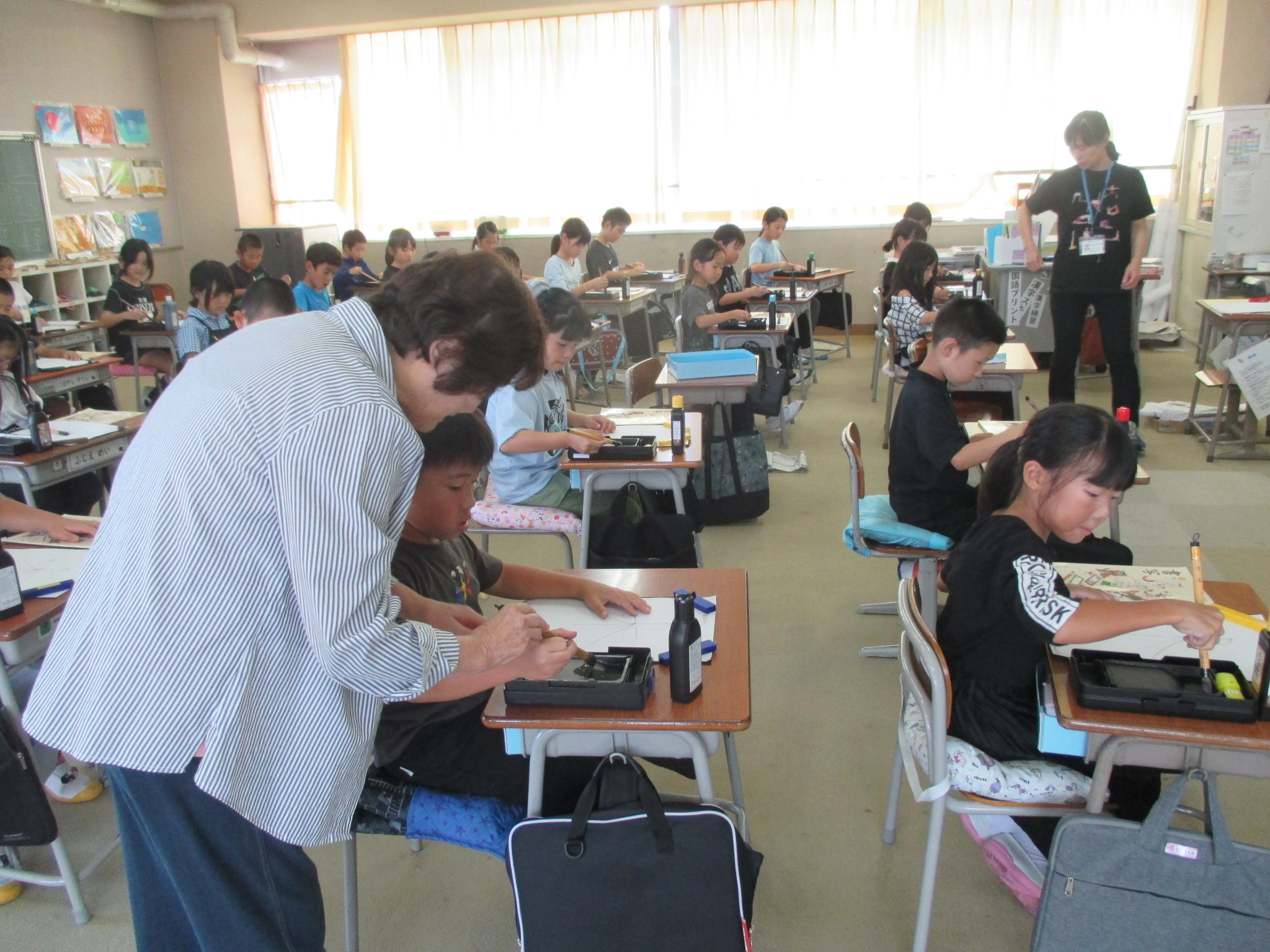 10月2日に北地区支え合い協議体の方による書写授業の支援が