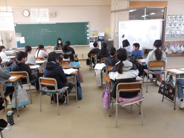 各教室でのリモート開催でした。6年生の教室から中継し,